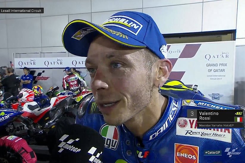 A peine descendu de sa Yamaha M1, et agréablement surpris par ce podium auquel il ne s’attendait pas, Valentino Rossi a rassuré ses fans et s’est confié au micro du site MotoGP.com.