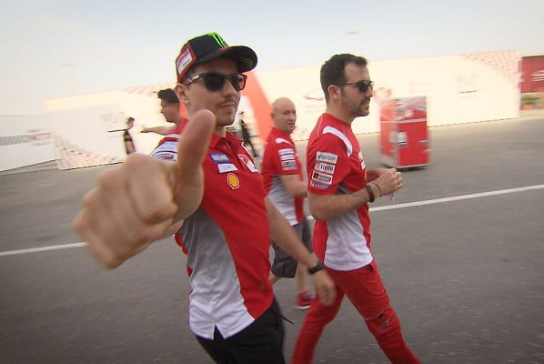 A Buriram, Jorge avait inquiété ses supporters en essayant une GP17, ce qui n’était pas du tout prévu. Ducati réquisitionnait à la toute dernière minute pour lui la moto de secours de Petrucci, qui ne disposait plus alors que d’une GP18. L’absence de sérénité semblait avoir disparu au Qatar où Lorenzo paraissait plus serein.