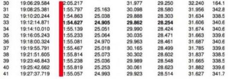Andrea Dovizioso a impressionné avec le deuxième chrono en 1’54.627, mais aussi et surtout avec 11 tours consécutifs en 1’55 (dont parmi eux deux en 1’54). Voici ces tours :