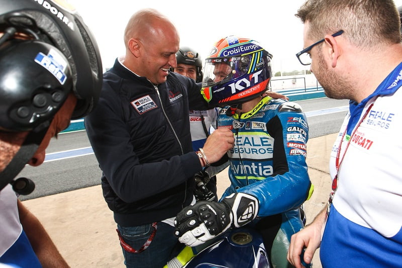 Il appréciait également dans Motogp.com la performance de Siméon, vainqueur du Championnat FIM Superstock 1000 en 2009 en tant que pilote officiel Ducati, et qui s’était mis en valeur le 12 juillet 2015 en livrant une bataille magnifique à Johann Zarco au Grand Prix d’Allemagne Moto2 et en précédant le Français pour la victoire de 0.083.