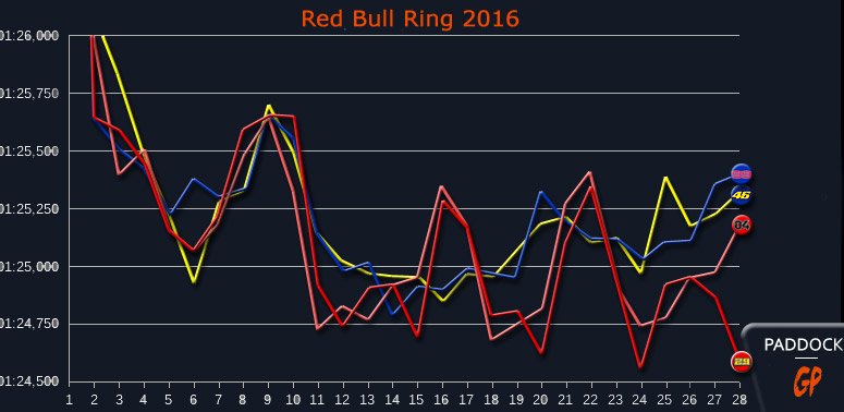 – Les Ducati avec un rythme supérieur aux Yamaha à partir du 11e tour…