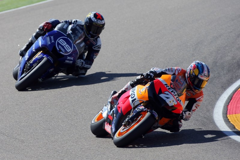 La course du Qatar donne le ton. Jorge Lorenzo, survolté, se joue littéralement des deux officiels Honda en leur tournant autour comme une mouche. Il s’empare de la victoire devant Pedrosa et Stoner. L’australien enchaîne avec deux victoires, notamment à Estoril, circuit favori de Jorge. Spies, censé au moins « aider » Lorenzo, connaît un début de saison catastrophique. Rapidement, les observateurs s’accordent à dire qu’il n’a pas les épaules pour ce guidon officiel, peut-être à raison. Le reste de l’année leur donna raison.