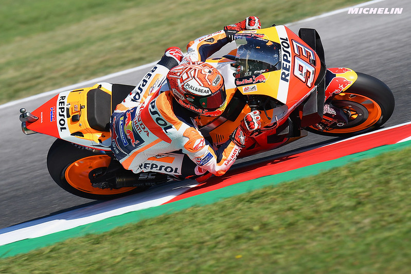 Cependant, on note un « point faible » dans son jeu. Entre guillemets, bien sûr, car à 20,8 points de moyenne par course, tout est relatif. Il s’agit de sa capacité à vaincre en duel, un défaut qu’il traîne depuis ses années Moto2. Les plus sages d’entre vous se rappelleront de ce duel magique entre lui et Scott Redding lors du Grand Prix de Grande-Bretagne 2012. Par le fait, les deux GP précédents se sont terminés de la plus cruelle des manières ; battu sur la ligne. D’abord, par Andrea Dovizioso en Autriche. L’Italien, pas connu pour son incisivité, avait effectué une manœuvre d’un autre temps dans le tout dernier virage pour s’imposer. Puis, Álex Rins lui fit la leçon à Silverstone, grâce à un bijou de dépassement qui sentait le QI course à plein nez. Pas la meilleure des dynamiques pour courir à Misano, mais ça reste Marc Márquez.