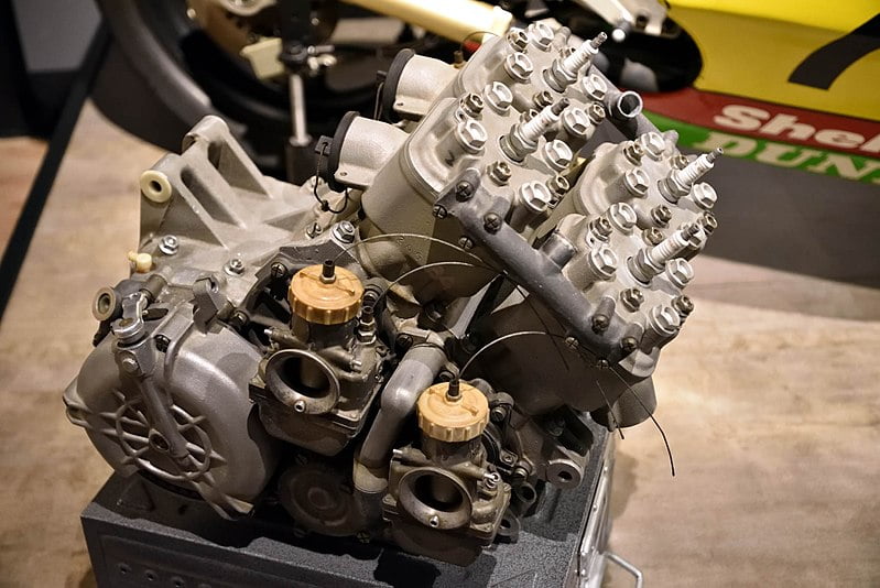La firme opte pour un cadre coque en aluminium orignal, rarissime à l’époque. Ajoutez à cela une suspension arrière à levier ainsi qu’un dessin de carénage peu conventionnel, et vous obtenez une machine atypique qui ravit les fans.
