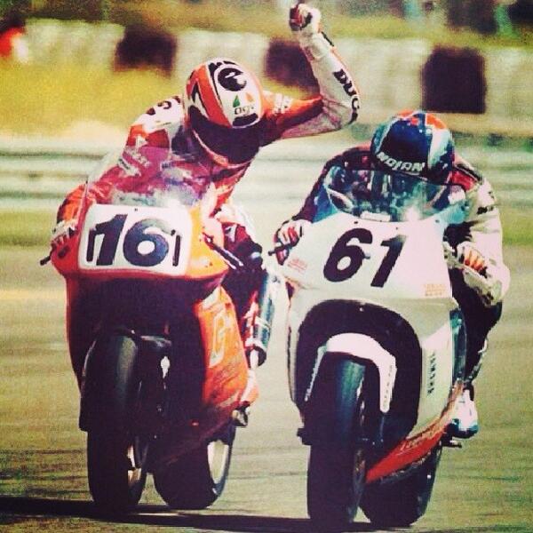 Sito Pons, chez l’ennemi Campsa-Honda, performe. Déjà vice-champion en 1986, l’autre catalan – encore un – figure troisième du général 1987. Les deux hommes, issus de la même ville et se connaissant depuis longtemps, ne s’aiment pas plus que ça. En 1988, la bataille tant attendue pointe enfin le bout de son nez. Sur une grille bourrée de talent (Jacques Cornu, Luca Cadalora, un vieil Anton Mang, Dominique Sarron, Jean-Philippe Ruggia …), deux barcelonais dominent le sport.
