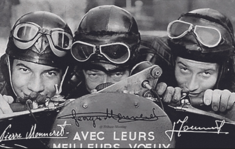 Tout commence en 1908 avec la naissance de Georges Monneret. Le premier grand nom de cette saga est un passionné de motocycles en tout genre et relèvera très vite le défi de la compétition. Il remporte dès 1930 plusieurs courses en 350 et 500 cm3 avant de marquer l’histoire à seulement 21 ans en établissant un nouveau record de vitesse en côte à Château-Thierry, la Mecque des sports mécaniques de l’époque. Le jeune pilote, que l’on surnomme désormais affectueusement « Jojo la moto » connaît une ascension fulgurante et s’essaie en parallèle (avec succès) à d’autres disciplines.