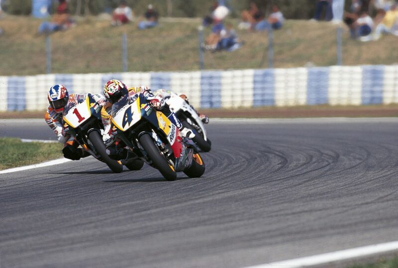 Entre Cadalora, Beattie et autres Aoki, les « Repsol Boys » ont éclipsé pas mal de grands talents. Ici, derrière Doohan et Crivillé à Barcelone en 1996. Photo : Box Repsol