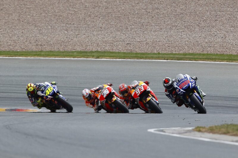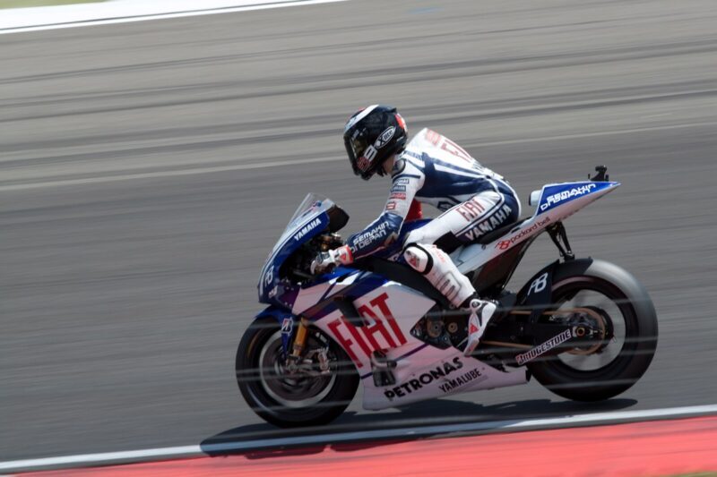 Commençons par là. Lorenzo, c’était avant tout un talent sans commune mesure. Son pilotage sans défaut lui permettait de réaliser des prouesses. Dans un bon jour, personne ne pouvait rien contre « Por fuera », et nombreux s’y sont cassés les dents. Grosso modo, son style consistait en une forme pure, sans à-coups, avec, comme résultat, une vitesse de passage en courbe effarante. Les qualités du quatre cylindres en ligne crossplane Yamaha lui permettaient d’être inatteignable en virages. Jorge pouvait passer tous les tours au même endroit, et cela était particulièrement marquant depuis le bord de piste. Sa régularité est à étudier dans toutes lés écoles de pilotage, toujours dans le même dixième de seconde sur plus de vingt boucles.