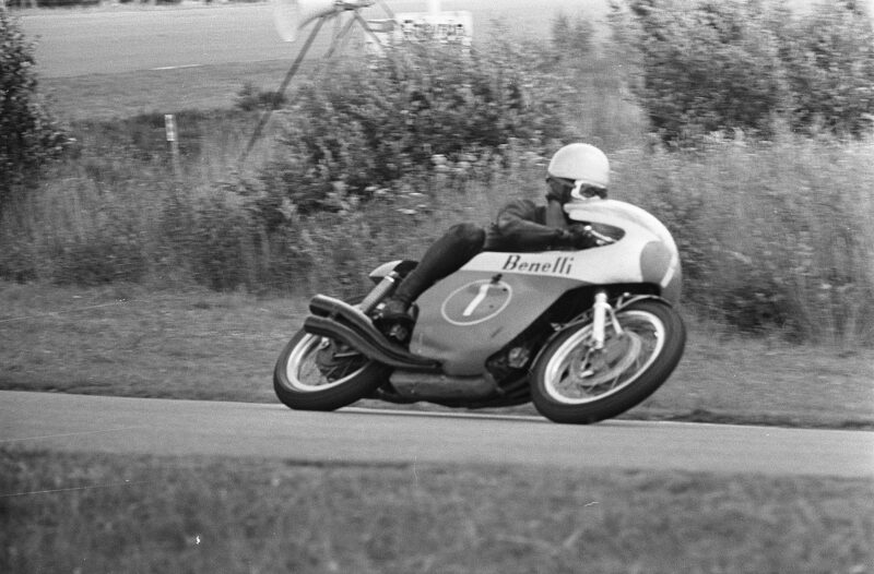 Les Benelli étaient à l’aise en quart de litre, et le style de pilotage très engagé de Pasolini convenait plutôt bien à la cylindrée. Dès lors, il se concentre uniquement sur cette classe. Malheureusement, une vilaine blessure engendrée dès le Grand Prix d’Allemagne, deuxième manche de la saison, lui contraint de laisser le guidon à Kelvin Carruthers. Une fois la clavicule remise, Renzo revient bien motivé, mais il y a le feu : Carruthers s’était imposé en son absence. L’Italien gagne à Assen, profitant de la panne de Rodney Gould, puis triomphe de nouveau au Sachsenring, avec la manière. En Tchécoslovaquie, « Paso » remet ça : Il est inarrêtable. Carruthers se tient à bonne distance, il n’est pas prêt de laisser passer une opportunité comme celle-ci.