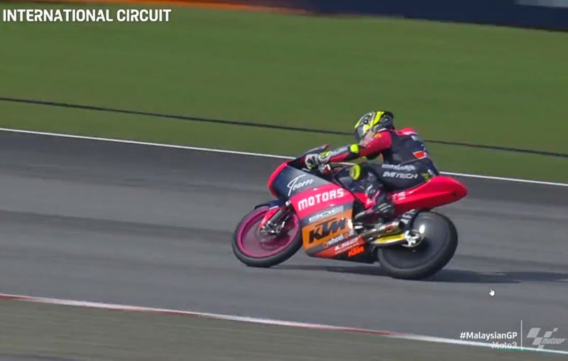 Il s’agit du guidon laissé par Gábor Talmácsi dans l’équipe « Bancaja » de Jorge Martínez ! Doté d’Aprilia très performantes, « Aspar » avait réussi à imposer le Hongrois deux ans auparavant. Quel flair. Immédiatement, la mayonnaise prend. Julián Simón enflamme tout sur son passage, et descend rarement du podium ; Bradley Smith et Nicolás Terol n’y peuvent rien. Si Talmácsi dut patienter jusqu’à Valence, Simón fut sacré à Phillip Island. Aucune déconcentration à déplorer, puisqu’il remporta les deux courses suivantes et inscrivit un coup du chapeau à Valence (pole, meilleur tour en course et victoire).