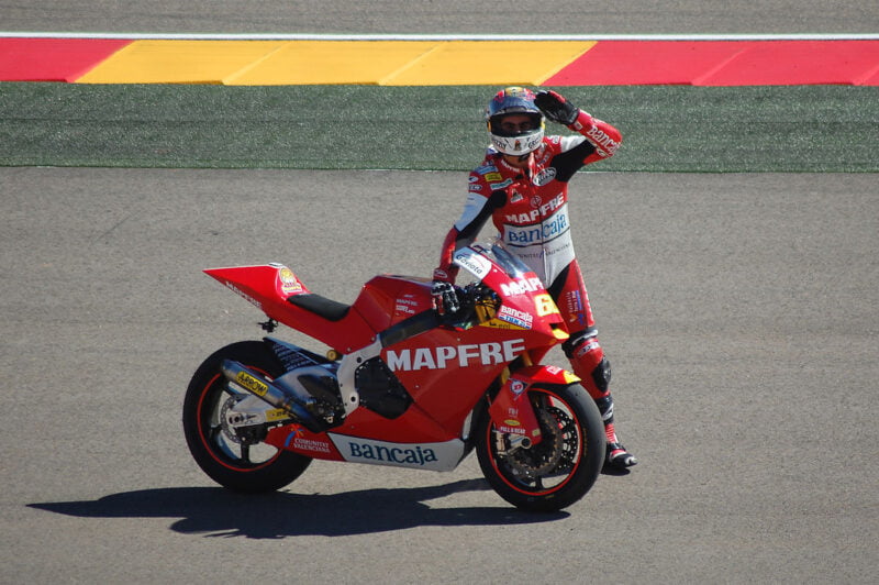 Il compte sept victoires, soit autant que Brad Binder en 2016, et plus que Dani Pedrosa en 2003 ! Et encore, le total aurait dû être plus élevé. En effet, à Barcelone, Simón franchit la ligne en tête et célèbre… alors qu’il restait un tour. Des images qui ont fait le tour du monde. Aleix Espargaró lui rendit hommage 13 ans plus tard, là, sur la même piste. Andrea Iannone, bientôt vainqueur, ainsi que trois autres pilotes le passèrent. Heureusement pour lui, ceci n’eut point d’incidence sur le résultat final.