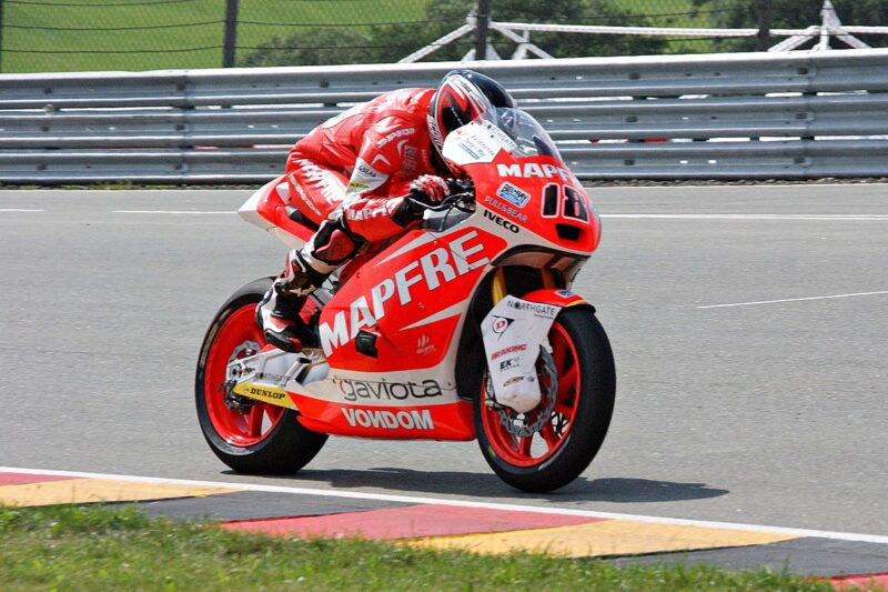 D’autant plus que le génial Jorge Martínez cherche un pilote pour remplacer Simón, et ne tarde pas à engager Nicolás Terol. Déjà deux épisodes furent consacrés à des champions oubliés passés par la structure d’Aspar en 125cc. Comme Aki Ajo, Martínez a la formule magique pour faire remporter des titres. Cette signature propulse Terol dans une autre dimension. L’Espagnol est monstrueux, et quitte rarement le podium. Malheureusement, il est contraint de manquer le Grand Prix d’Allemagne, ce qui pèse lourd dans la course au titre. Il échoue contre Marc Márquez pour « seulement » 14 points – excusez du peu.