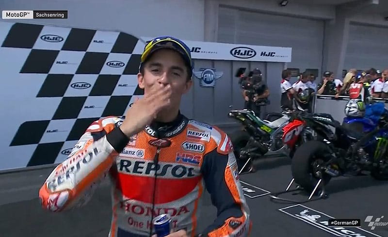 A peine descendu de sa Honda RC213V officielle après avoir obtenu sa 10e victoire consécutive au Grand Prix d’Allemagne sur le circuit du Sachsenring, Marc Márquez s’est confié devant la caméra du site MotoGP.com avec le bonheur de pouvoir partir en vacances avec une très bonne option sur le titre 2019…