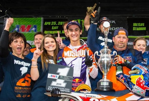 Ce week-end au Texas, sur un tracé technique, Musquin est monté sur la plus haute marche du podium du Stadium AT&T d’Arlington. Après un début de course très bref en raison d’un drapeau rouge, il s’est emparé du commandement lors du deuxième envol et ne l’a plus lâché pendant les 26 tours de la finale d’une durée d’environ 20 minutes, alors que beaucoup de ses adversaires allaient à la faute. C’était la première victoire de Musquin dans cette prestigieuse catégorie.