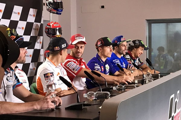 La traditionnelle conférence a eu lieu ce jeudi en fin d’après-midi à Misano avec comme invités Andrea Dovizioso, Marc Marquez, Maverick Vinales, Cal Crutchlow, Andrea Iannone et Franco Morbidelli, auxquels s’était joint Tito Rabat en raison de sa récente signature chez Avintia pour 2018.