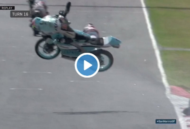 En effet, l’Argentin perdait l’arrière de sa KTM dans le dernier virage et celle-ci revenait en piste sous les roues de la Honda de Livio Loi.