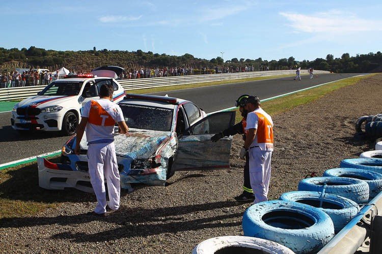 Franco Uncini, 62 ans et ancien Champion du Monde du temps de la 500cc avec Suzuki s’est en effet offert une sortie de piste à 200 km/h au volant de la puissante BMW de la direction de course dont il fait partie. Un sacré choc qui l’a laissé un moment KO, après avoir fini sa course dans les barrières, en marche arrière.