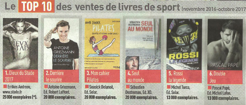 Hier, le journal L’Équipe a sorti un classement des meilleurs livres de sport basé sur la période novembre 2016–octobre 2017.