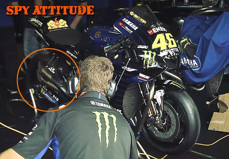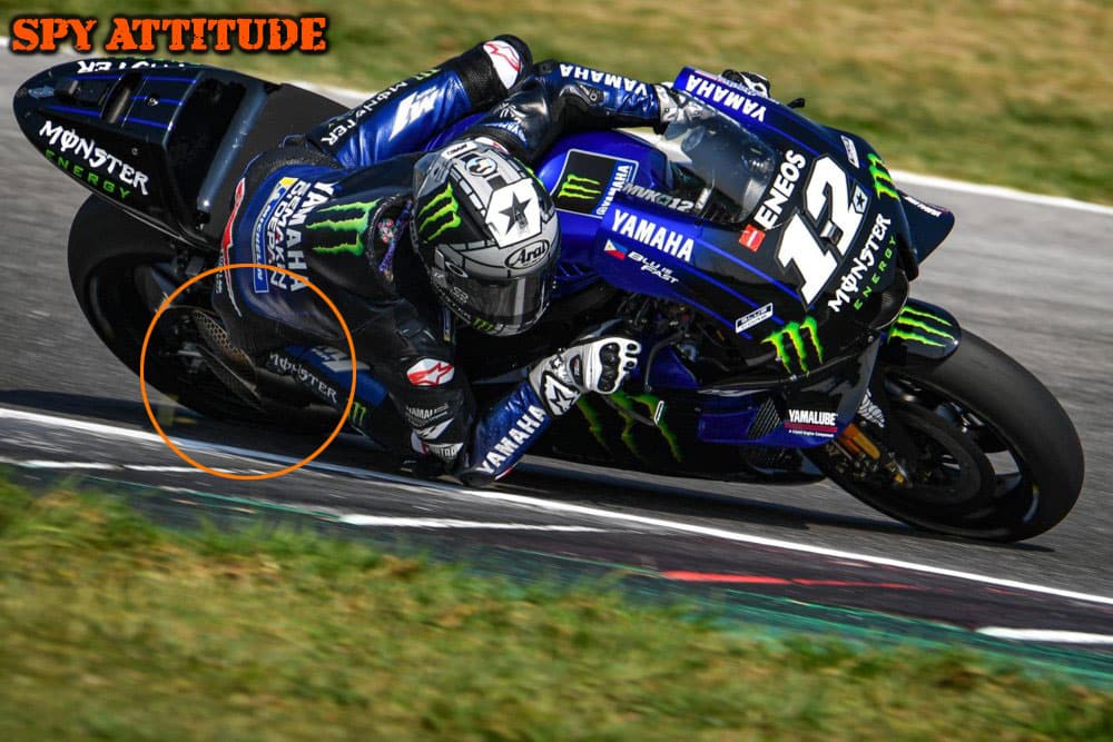 3/ Aujourd’hui, Maverick Vinales et Valentino Rossi ont également essayé un échappement double « façon Suzuki », mais cela n’ayant pas perduré dans le temps, il n’est pas évident que les techniciens de Yamaha soient satisfaits de ce test.
