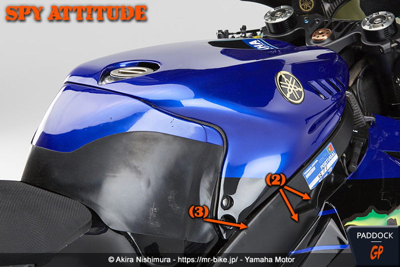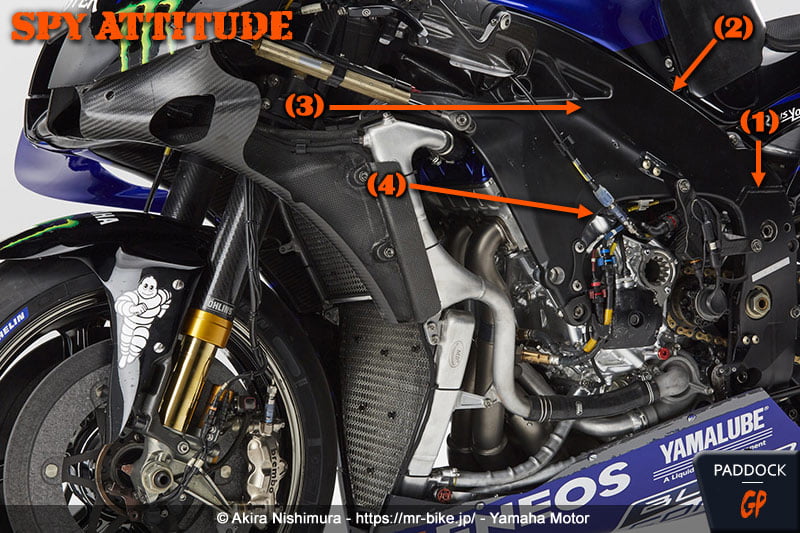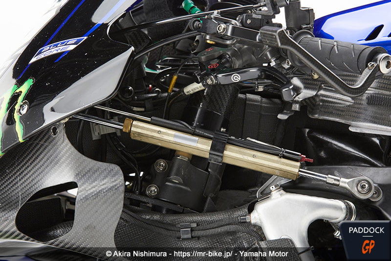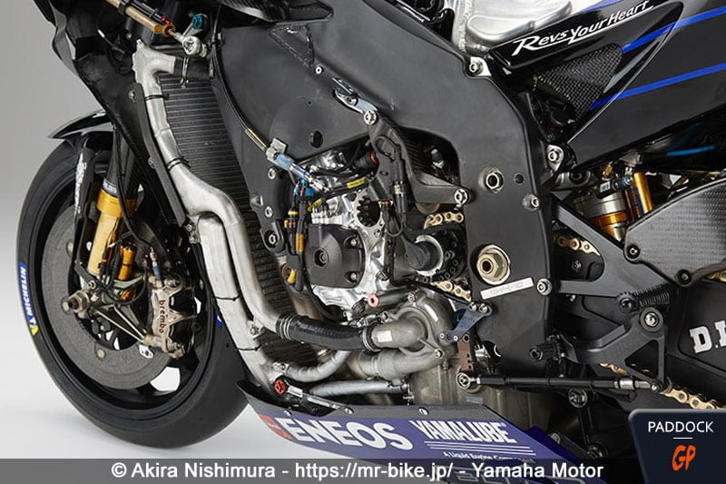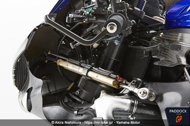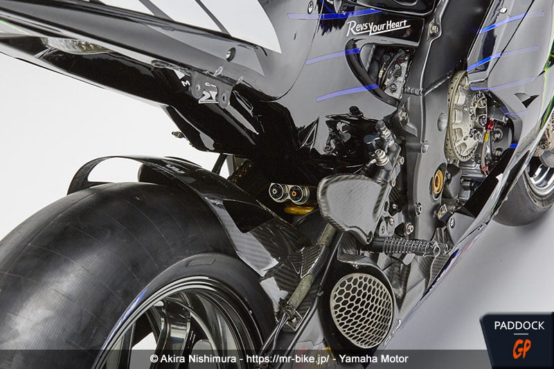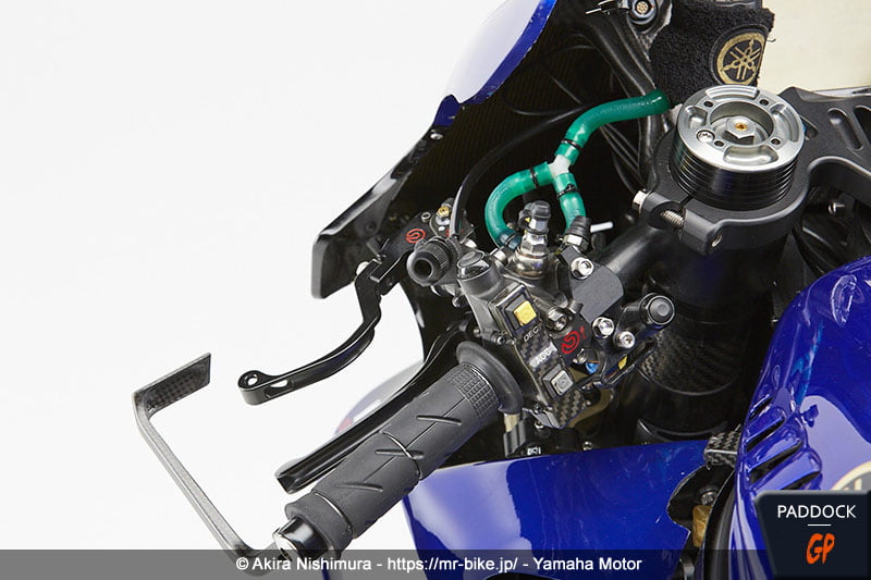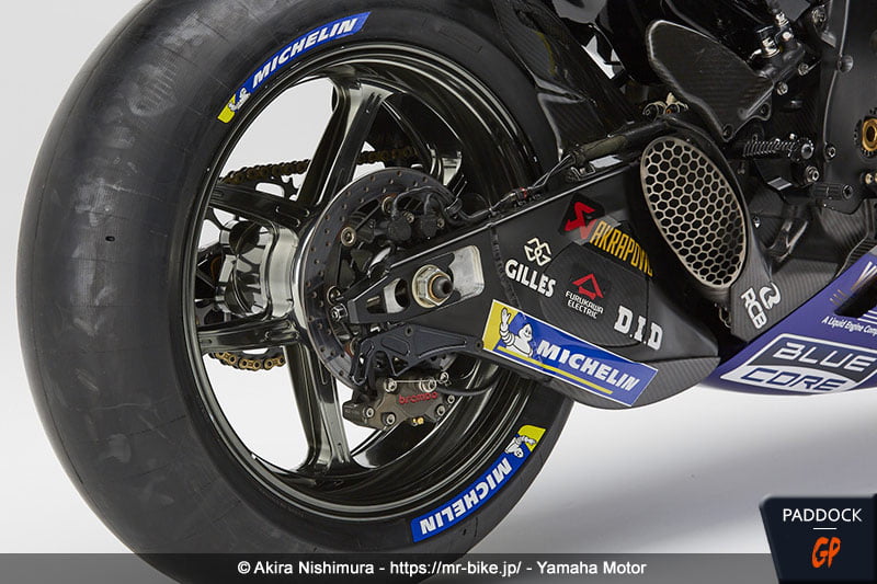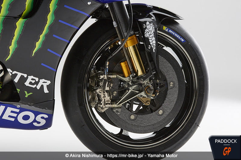 L’observation des photos montre que Yamaha a bien joué le jeu avec Akira Nishimura, en livrant des photos de la YZR-M1 2020 de Maverick Viñales utilisée à Portimão, soit la dernière course de la saison, dans sa configuration bras oscillant en aluminium, freins 2019/début 2020 et frein arrière au guidon.
