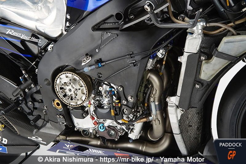 Alors que, au temps béni où nous pouvions arpenter la pitlane des Grands Prix, c’est à dire jusqu’à fin 2019, nous nous faisions régulièrement rabrouer et demander d’effacer des photos dès que nous capturions une MotoGP sans ses carénages, le journaliste japonais Akira Nishimura se voit remettre pour diffusion chaque hiver des photos des Yamaha, Suzuki et Honda en petite tenue, au terme d’entretiens très complets avec les chefs de projet des trois constructeurs nippons ! Rien que ça !
