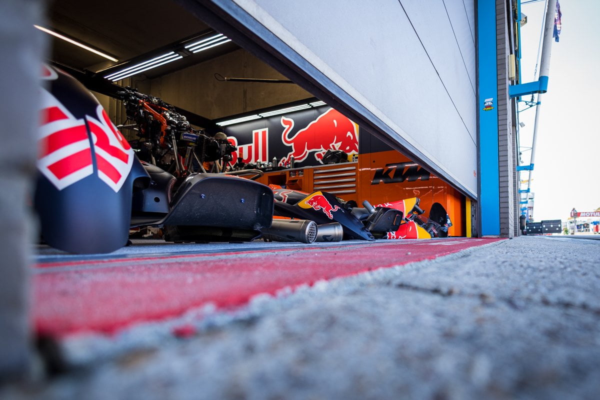 Ce petit détail sur les KTM concerne moins les performances que le confort du pilote, ce qui peut à son tour contribuer aux performances. Ce petit conduit masqué derrière le carénage latéral, qui fait en fait partie du carénage lui-même, est un conduit d’air qui est conçu pour canaliser de l’air frais vers le pied du pilote. Avec le passage de la ligne d’échappement juste derrière le repose-pied, il peut faire extrêmement chaud dans cette zone. On se souvient de plusieurs pilotes qui disposent du scotch aluminium sur leur botte afin de limiter l’effet de la chaleur. C’est moins esthétique mais tout aussi pratique. Pour ceux qui en douteraient, il suffit de se rappeler des débuts d’incendie subis à cet endroit par les Ducati…