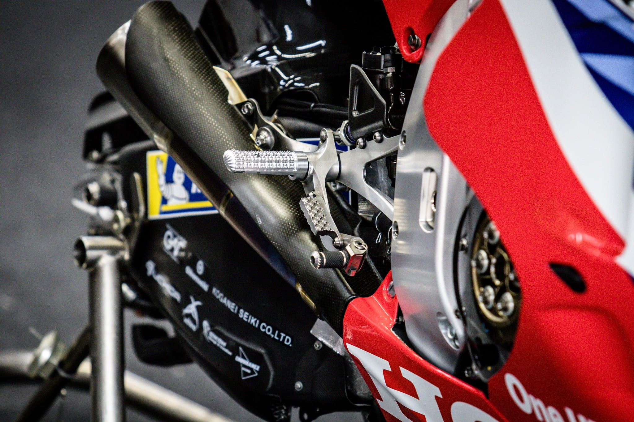 On observe ici un détail sur la Honda sur laquelle Tetsuta Nagashima a roulé au Grand Prix du Japon : c’est ce morceau de métal supplémentaire qui se trouve sur le levier de frein arrière, qui est utile lorsque le pilote est penché à des angles d’inclinaison élevés vers la gauche et que le levier de frein arrière est un peu difficile à atteindre. Avec cet appendice métallique, cela permet au pilote d’actionner le frein arrière sans avoir besoin de se contorsionner.