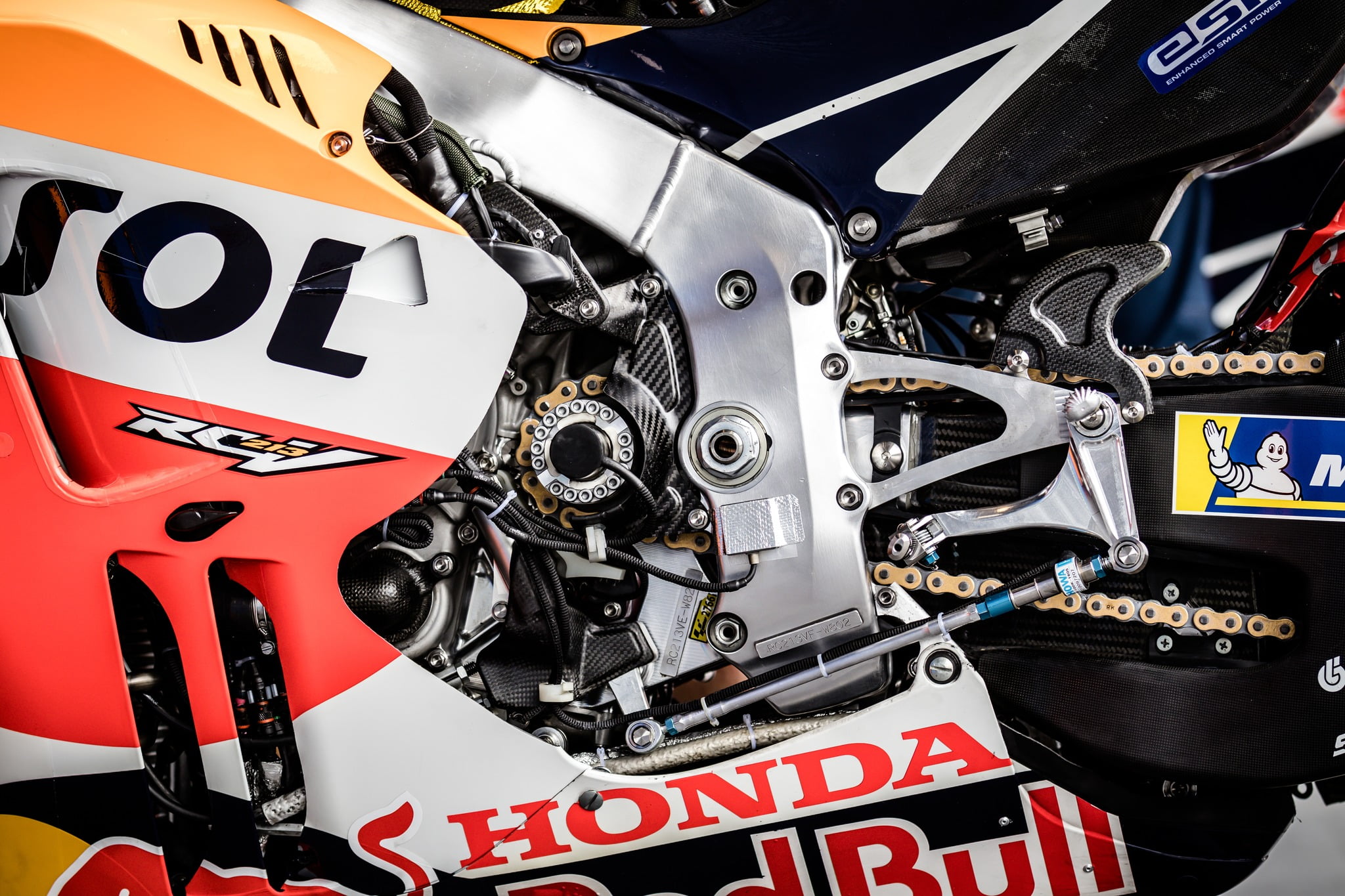 L’autre détail intéressant sur cette photo est le capteur de couple, qui se trouve au-dessus du pignon de sortie de boite. Le capteur de couple mesure la force de rotation provenant du moteur. Cela permet aux ingénieurs d’utiliser les données recueillies pour obtenir une image du couple réel réalisé par leur moteur et de le mettre en exergue des autres actions qui se produisent sur la moto : patinage, dérive, et les retours techniques du pilote. C’est un outil utile pour aider les équipes techniques à transformer la puissance impressionnante des MotoGP en quelque chose d’utilisable sur piste.