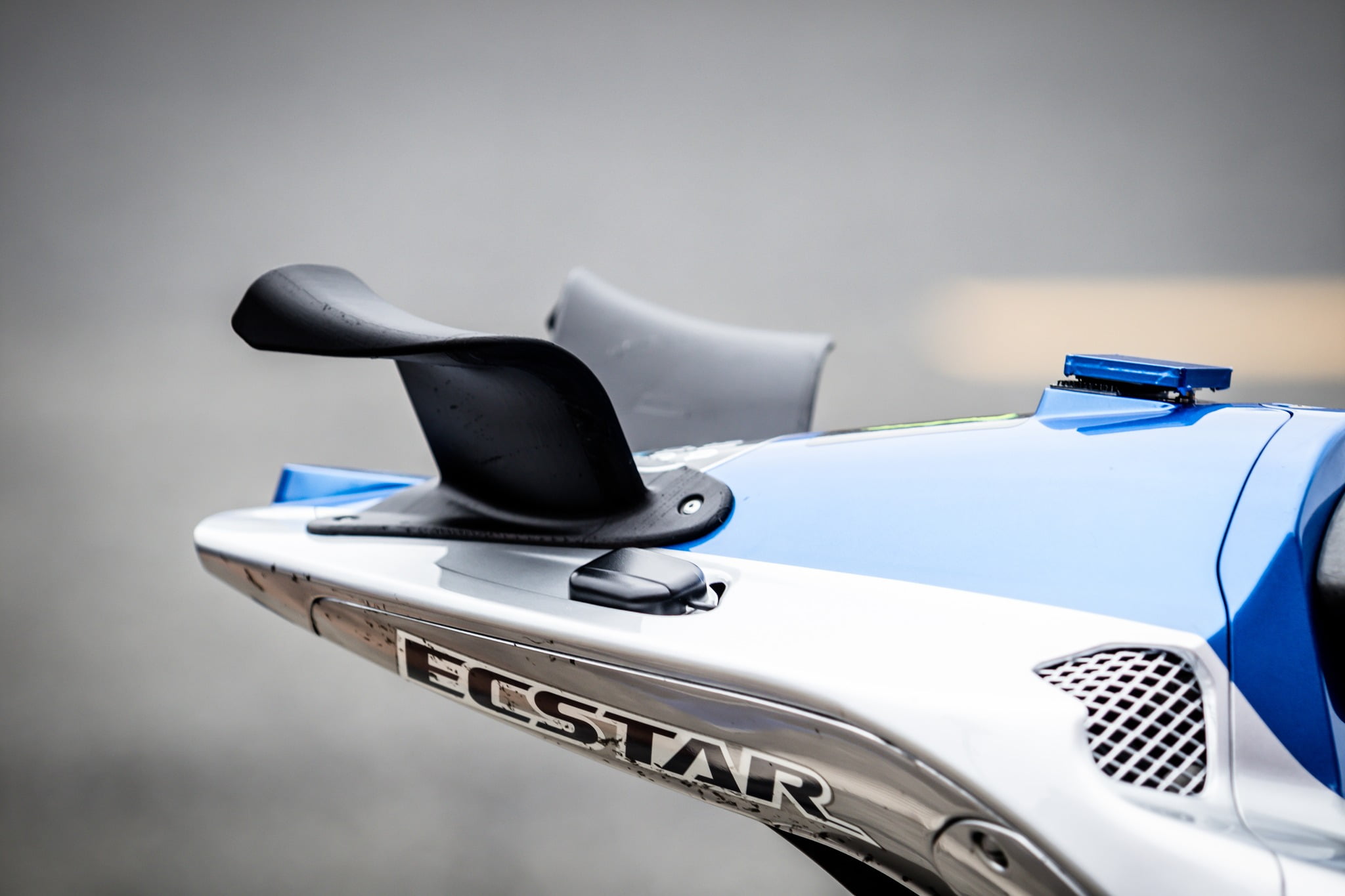Suzuki a travaillé sur le développement d’un mix de ces deux solutions, l’aileron se présentant initialement à un angle similaire au design présent sur la Ducati, mais qui se courbe ensuite pour être horizontal lorsque la moto est droite. Il semble que Suzuki ait cherché à combiner tous les points positifs développés par Aprilia et Ducati : force d’appui en ligne droite pour la stabilité du freinage et de l’accélération, charge supplémentaire pour une meilleure adhérence à l’arrière dans le virage, puis force d’appui à des angles d’inclinaison élevés pour aider à trouver ce petit peu d’adhérence supplémentaire au point de corde.