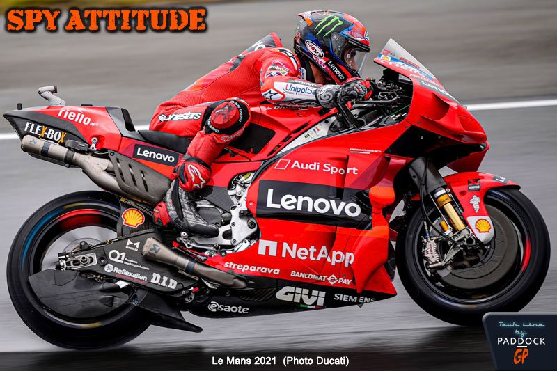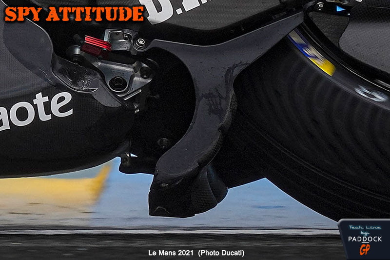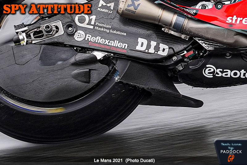 Avec les ailerons, la Salad Box avec possiblement un Mass Damper dedans, le Holeshot Device vite développé en Ride Heigh Adjustment, les flasques de roue et autres tubulures « effet de sol », sans compter ce que l’on ne voit pas, on ne compte plus les innovations apportées par Ducati ces dernières années, au grand dam de Honda pourtant initiateur d’une boîte seamless aussi coûteuse que délicate !