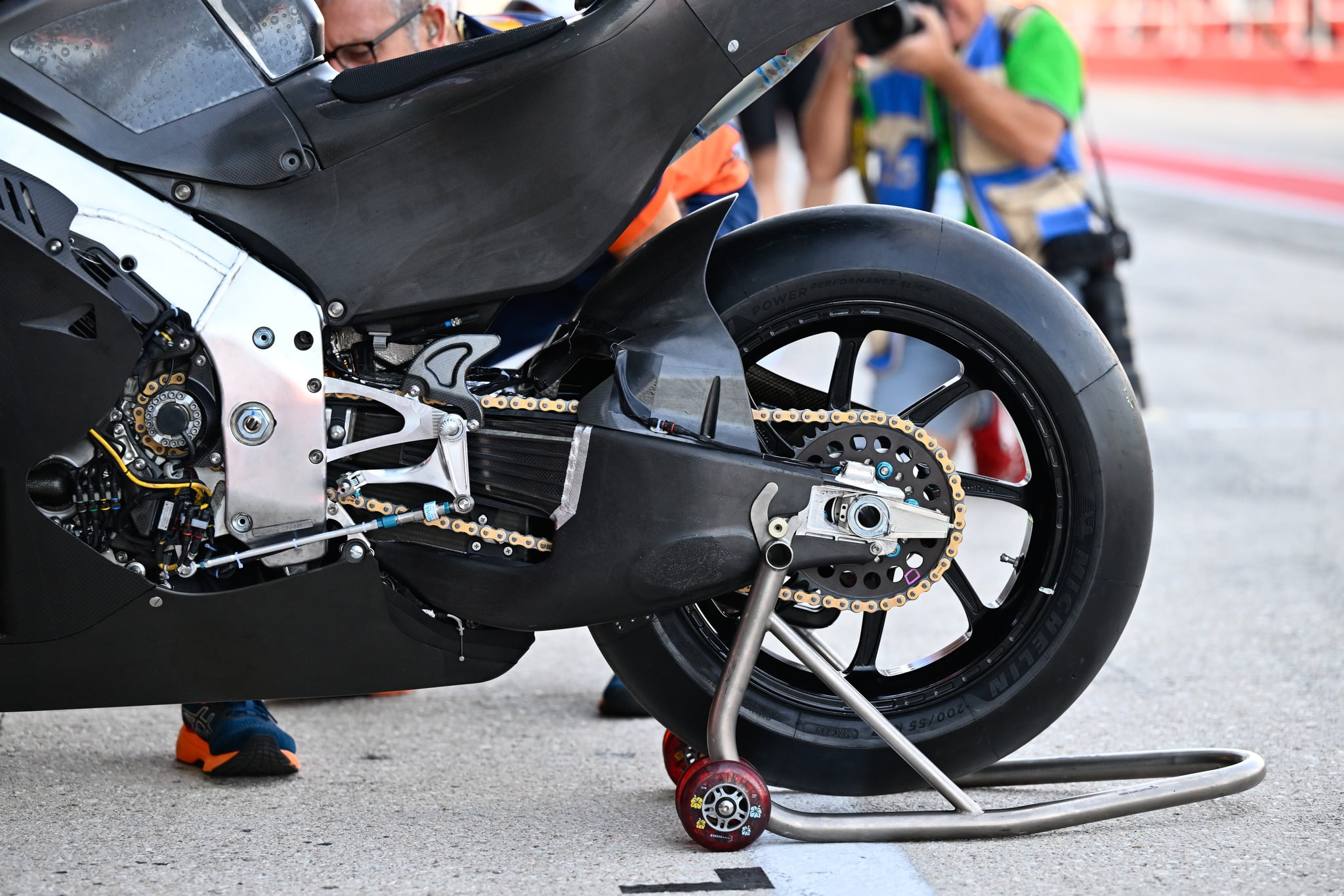 Une autre grande évolution était que Honda utilisait un bras oscillant Kalex au test de Misano. C’est un grand pas pour Honda, car c’est une usine qui avait jusqu’à présent toujours tout fait elle-même. Les voir utiliser un bras oscillant provenant d’un fabricant de châssis est une étape intéressante. Mais c’est intelligent, car Kalex est l’une des entreprises les plus compétentes et les plus prospères au monde lorsqu’il s’agit de fabriquer des morceaux de métal qui permettent aux motos de course d’aller plus vite.