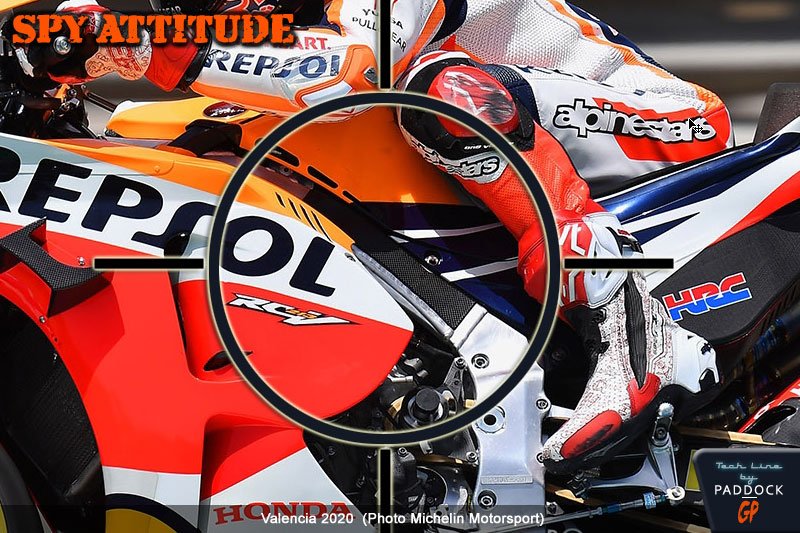 Honda, donc, avait tout d’abord présenté une solution similaire sur la moto de Stefan Bradl au Grand Prix d’Espagne 2019 avant d’être essayée par Marc Márquez lors du test suivant, toujours sur le tracé de Jerez, puis d’obtenir la pole position en Autriche sur le Red Bull Ring.
