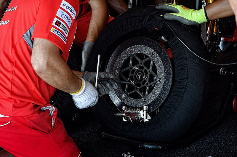 Les toujours splendides photos diffusées par Michelin nous permettent de voir que Ducati a équipé ses GP officielles de la sorte.