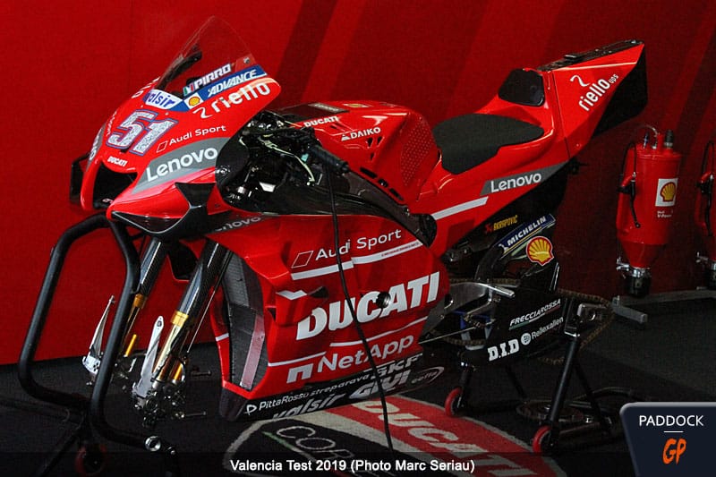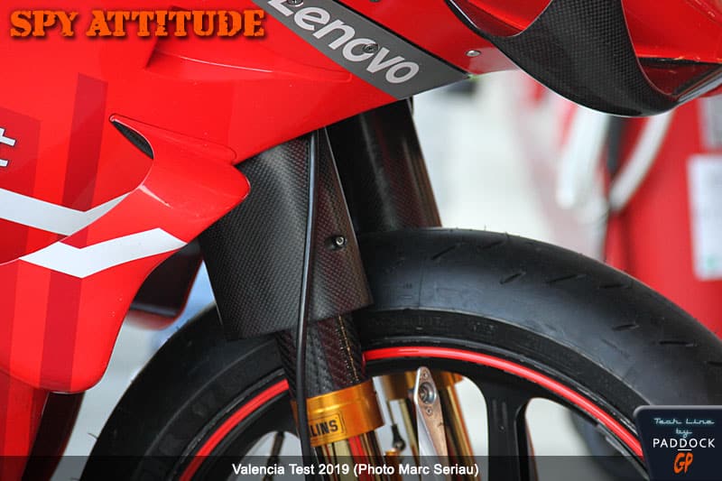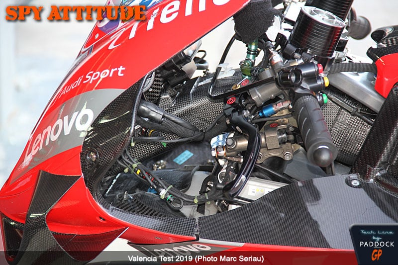 On sait seulement que Ducati travaille toujours pour améliorer ses passages en virage (modification des rigidités du cadre) mais essaie également de récupérer l’avantage moteur en vitesse de pointe qu’ils avaient jusqu’en 2018.