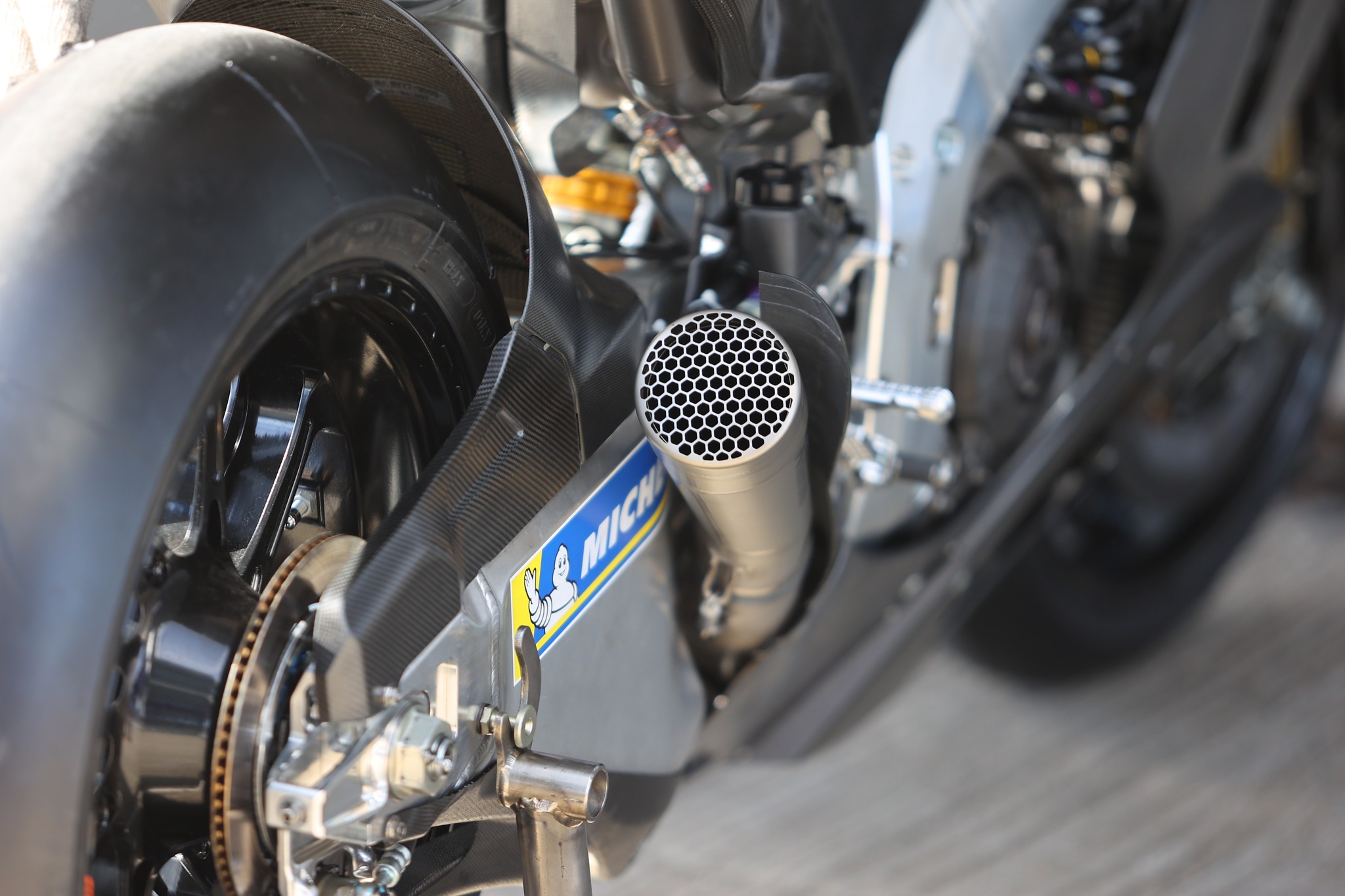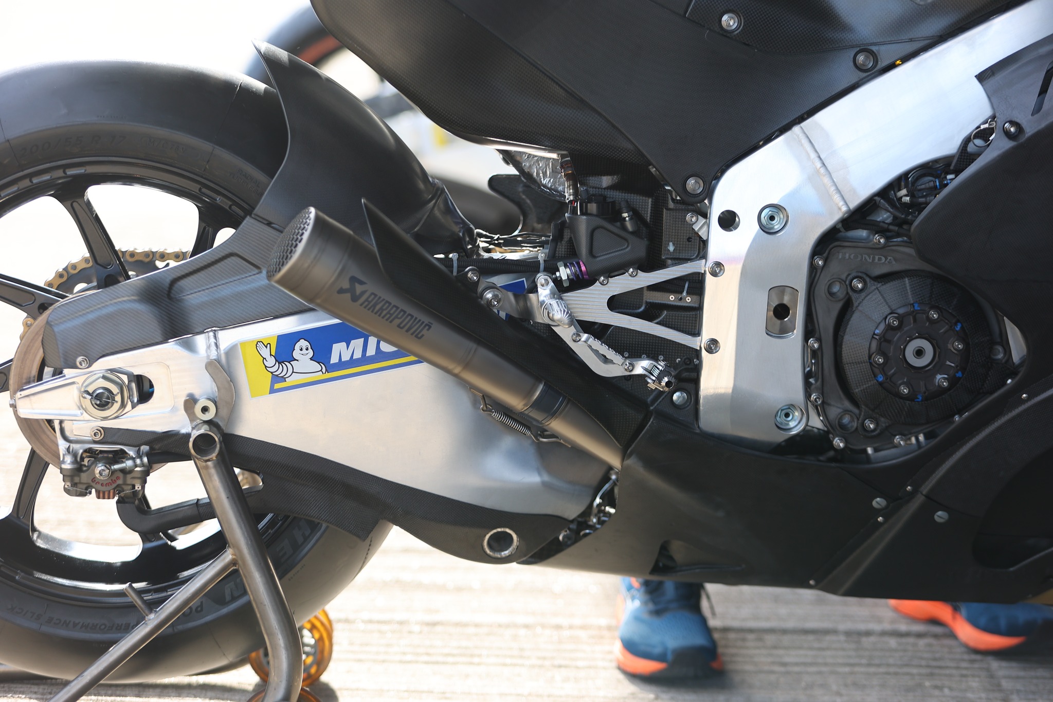 Honda poursuit également le travail avec le nouvel embrayage en carbone testé pour la première fois par Marc Marquez au test de Valence. Enfin, le bras oscillant Kalex était de sortie sur la machine japonaise.