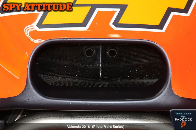 Aujourd’hui, et depuis le Mans pour les premières, les deux motos officielles ainsi que celle de Miguel Oliveira ont une prise d’air directe dont le conduit passe au-dessus des cylindres avant pour aboutir dans la boîte à air.