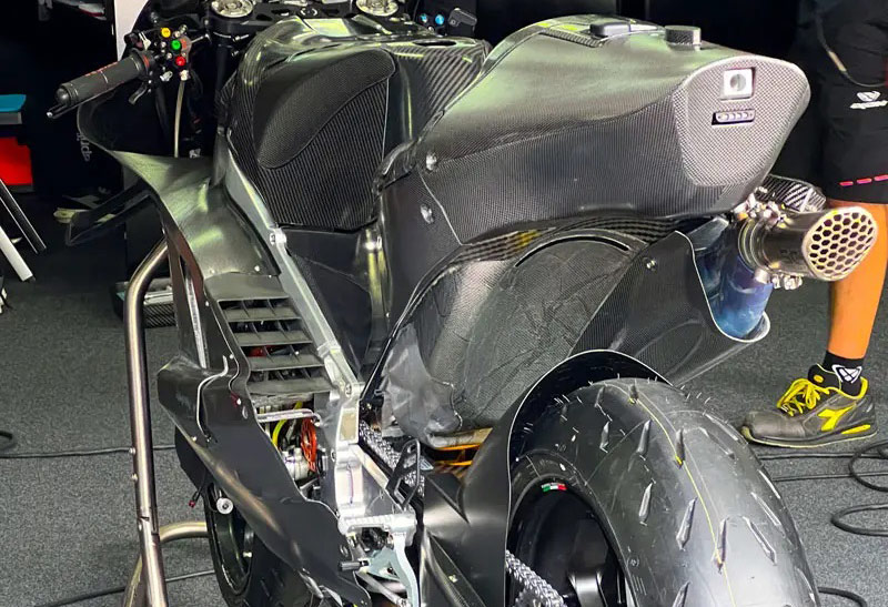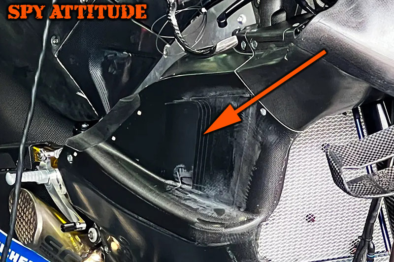 Noale s’est donc attaqué de façon plus rigoureuse à ce domaine et la RS-GP 2023 nous a déjà montré l’utilisation du bourrage engendré par le radiateur pour améliorer l’aérodynamisme supérieur, mais aussi inférieur, ainsi que l’approche aérodynamique au niveau de la sortie du carénage.