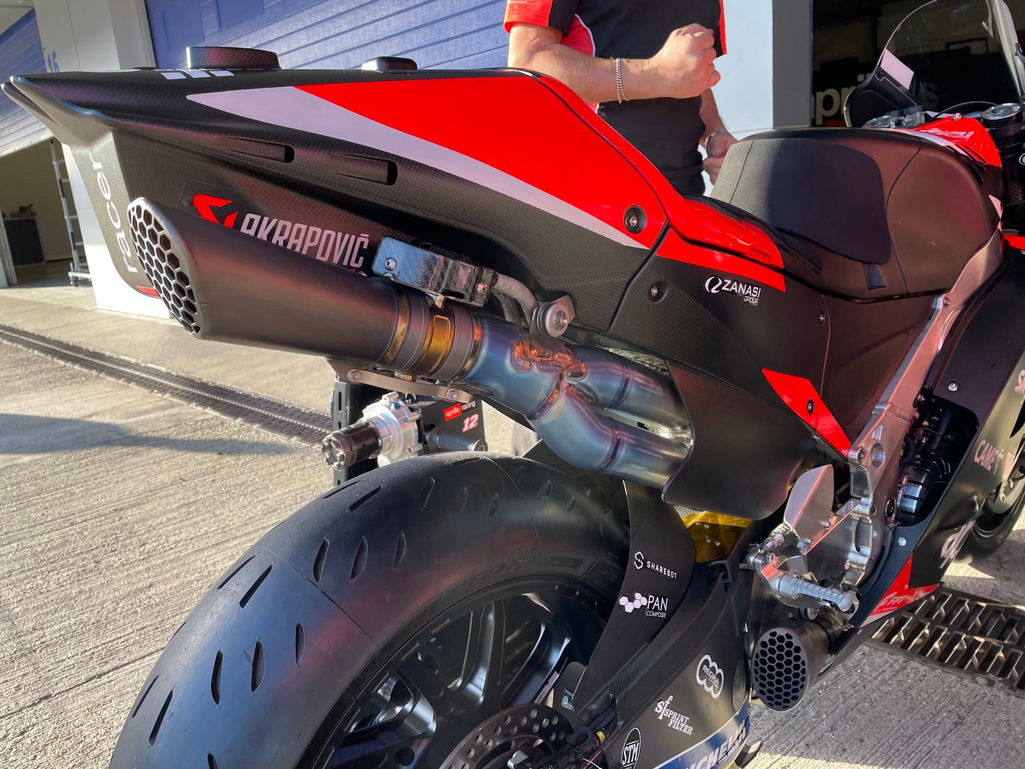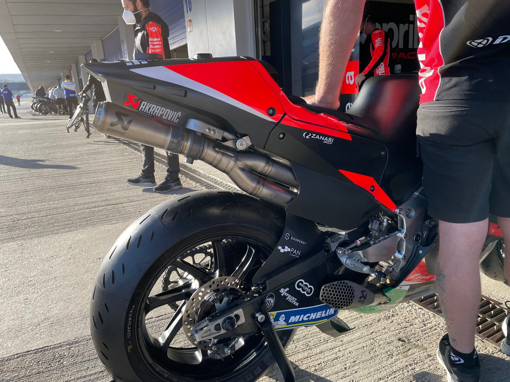 Aprilia testait également de nouveaux échappements, mais contrairement à Ducati, les différences sont mineures.
