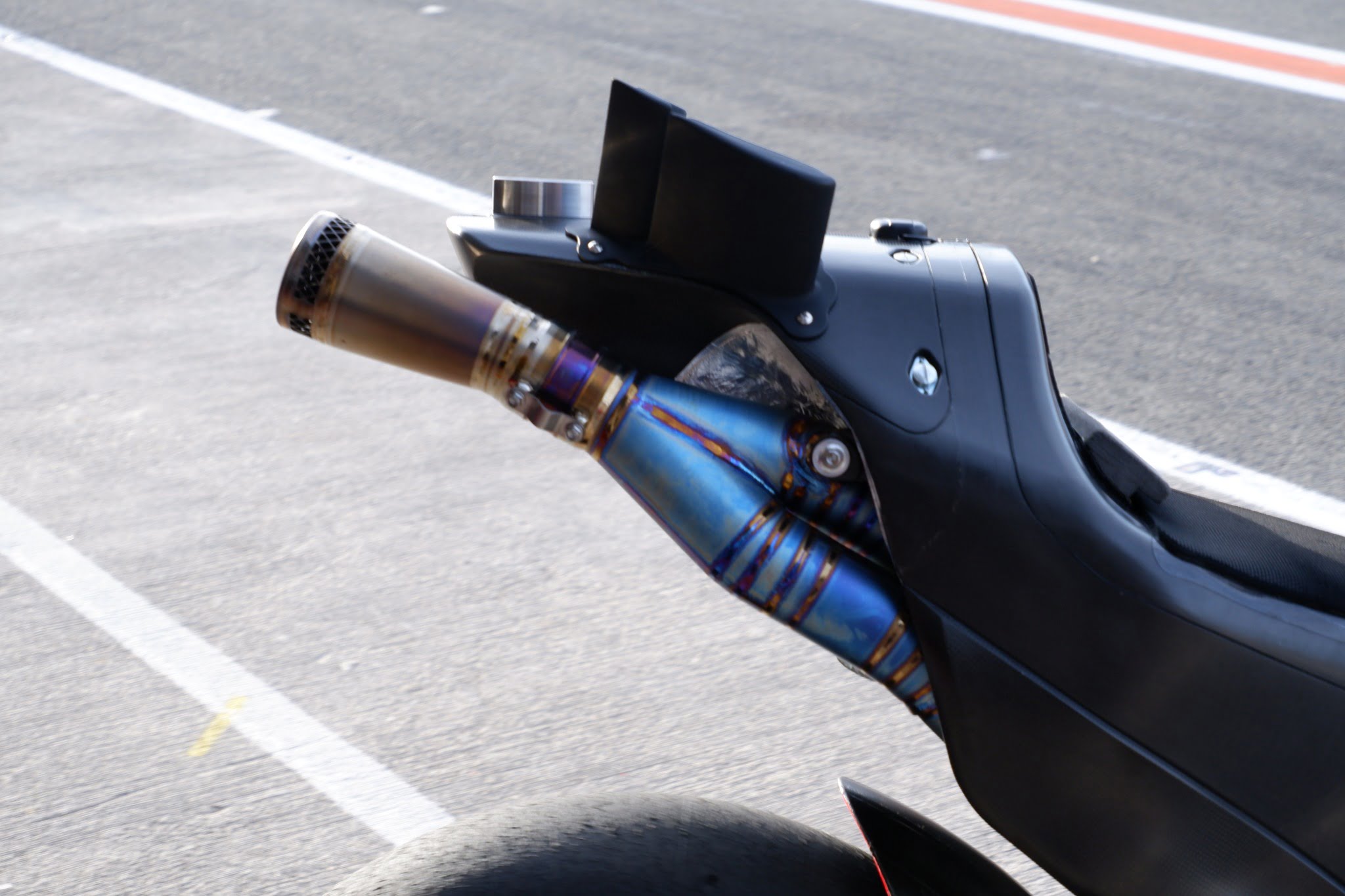 Vous pouvez voir à quel point le carénage latéral est différent lorsqu’ils utilisent celui ayant le style Aprilia, notamment au niveau des conduits aérodynamiques présents sur le bas de celui-ci.