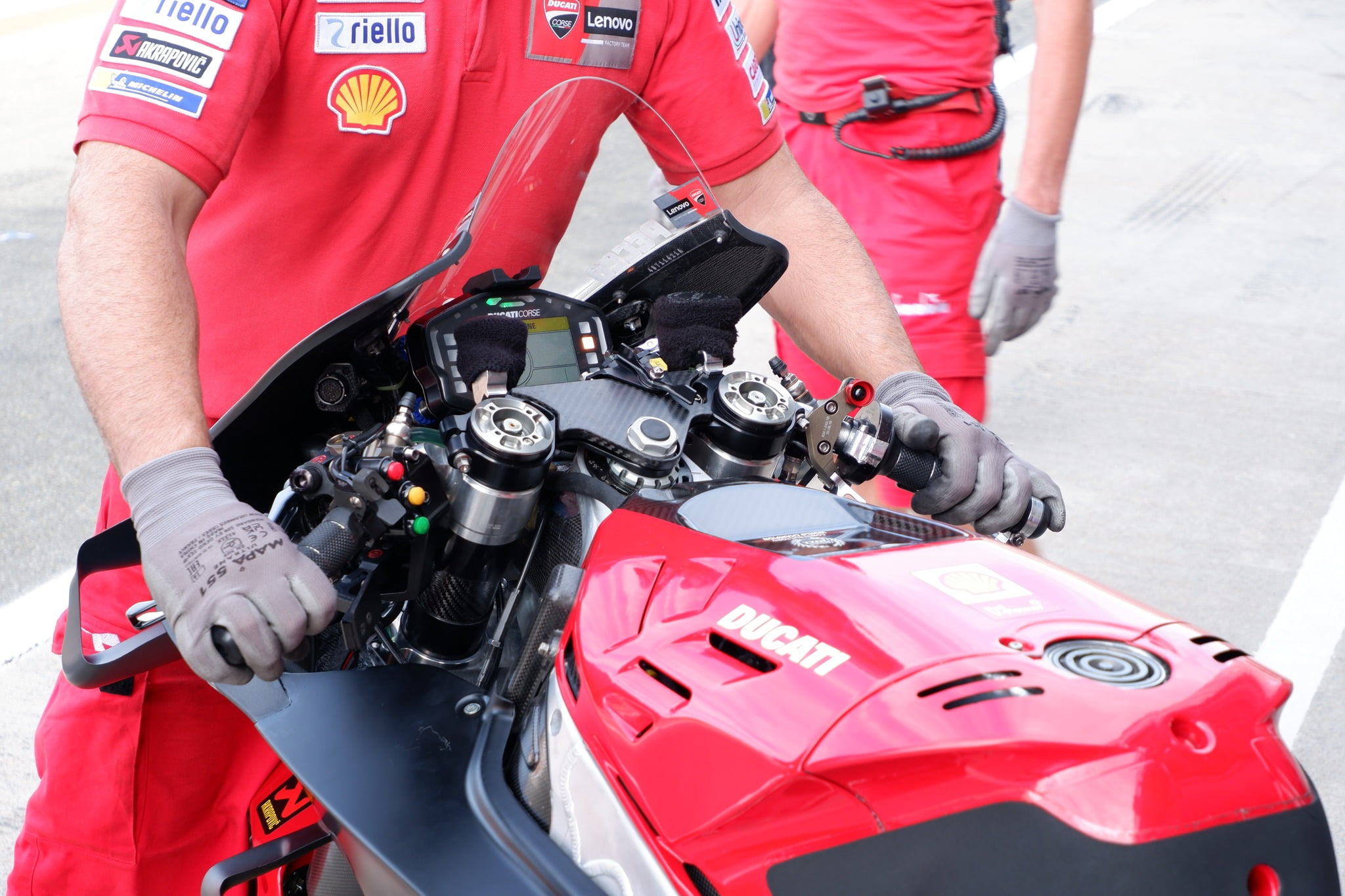 Les deux Ducati officielles, dont disposeront Pecco Bagnaia et Enea Bastianini lors de la saison prochaine, n’étaient équipés que d’un seul mécanisme d’activation du Holeshot Device, que l’on observe sur le té de fourche supérieur. Il semble donc que Ducati ait retravaillé ce système pour 2023.