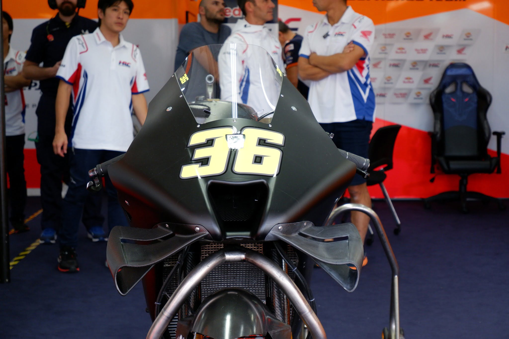 Ici, la Honda RC213V de 2022 suite aux diverses évolutions techniques apportées au cours de la saison.