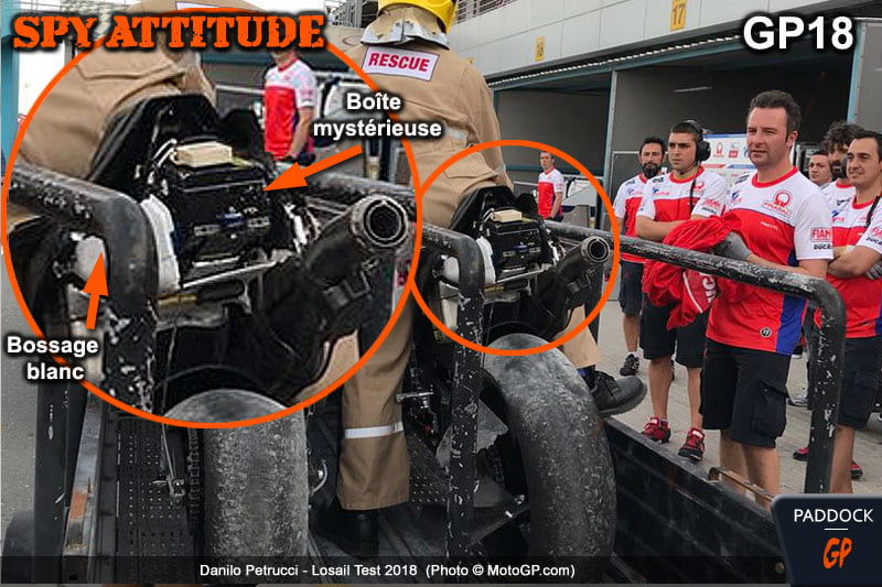 Aujourd’hui, à l’occasion de la double chute de Jack Miller et Danilo Petrucci, on a pu apercevoir ce qu’il y avait à l’intérieur. Et malheureusement, cela ne nous apprend rien !