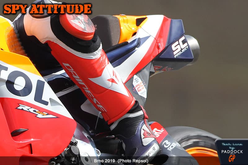 Enfin, soyons honnête, presque tout, car, à l’image des Ducati depuis un bon moment, Stefan Bradl a essayé à Brno une boîte disposée sous le dosseret de selle pour y loger une masse tout à l’arrière de la moto…