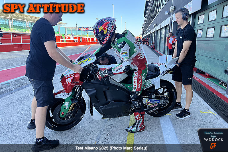 Problème de temps, problèmes de matériel (d’où le mauvais traitement des images), on ne va pas vous raconter notre vie, mais oui, nous avons bien passé la journée entière dans la pit-lane du circuit MWC Marco Simoncelli pour découvrir les dernières évolutions testées, dont certaines ont déjà été adoptées aujourd’hui.