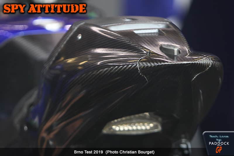 « La selle en carbone montée sur l’autre moto a une forme un peu différente. Nous avons également essayé différents carénages sur le premier prototype pour l’année prochaine, pour, comme toujours, avoir moins de wheelie ».