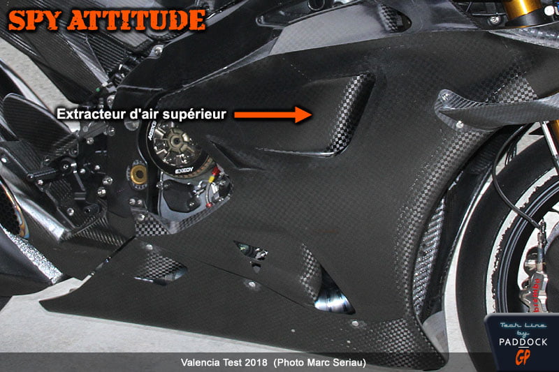 Enfin, et peut-être pas le moins important, les extracteurs d’air latéraux supérieurs du carénage ont complètement changé de forme et se sont notablement agrandis. De nouvelles sorties sont également apparues Simple travail sur le flux d’air du radiateur ou davantage, lié à un moteur plus puissant ?