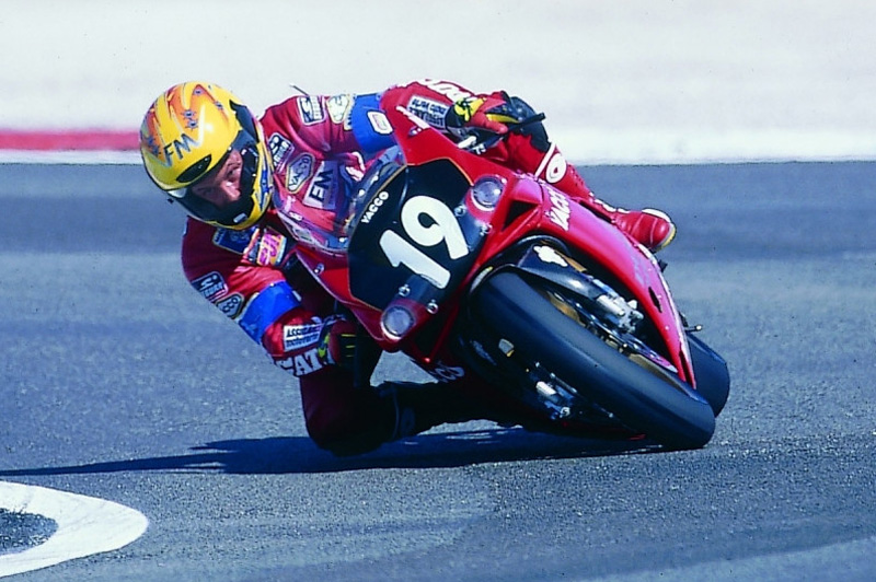 « Surtout de passer un bon weekend avec le public et les autres pilotes invités, Christian Sarron, Giacomo Agostini, Didier de Radigues que je connais un petit peu. Et après, je sais qu’il y a une parade (pour l’anniversaire de la belle Ducati 916), et Jean-Pierre (Bonato) m’a dit que c’était doucement, pas besoin d’aller très vite. Voilà, partager le weekend avec tout ce beau monde, que ce soit les autres pilotes ou le public. Après, par contre, je sais que je ne vais pas faire de courses, car j’ai quand même bien donné dans ma carrière. Avant le Supermotard, il y a eu quand même le Motocross et le Supercross, donc j’ai un genou très fatigué et plus de disques dans le dos. J’ai aussi un problème à l’avant-bras droit et dès que je fais 2 ou 3 tours d’un circuit, ça le me gêne pour désaccélérer et freiner. Donc du coup, je ne ferai pas les courses, ça c’est sûr. Je m’amuserai pas à jouer avec le feu et de toute façon je n’ai plus de cuir, plus de bottes de vitesse. J’ai un peu donné tout ça à mon neveu (Matéo Pédeneau) quand il a commencé et il m’a tout usé (rires), et je n’ai surtout pas envie d’aller mettre une moto qu’on m’a prêtée par terre, ni de me blesser. Donc j’y vais juste pour passer un bon weekend en dilettante avec tout ce beau monde et voir beaucoup de belles motos de course anciennes.”