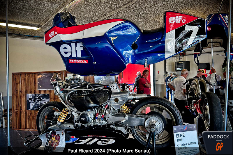 Notre deuxième coup de cœur ira à la superbe exposition des ELF réunies par Yves Kerlo. Une sorte de délire technologique des techniques automobiles appliquées à la moto. On approche le sublime, même si les résultats n’ont jamais été à la hauteur des espérances mises dans ces monstres issus de l’imagination d’André de Cortanze, un ingénieur français ayant œuvré avec un certain succès en Formule 1 chez Alpine, Renault Sport puis Peugeot Sport, Sauber et Ligier.