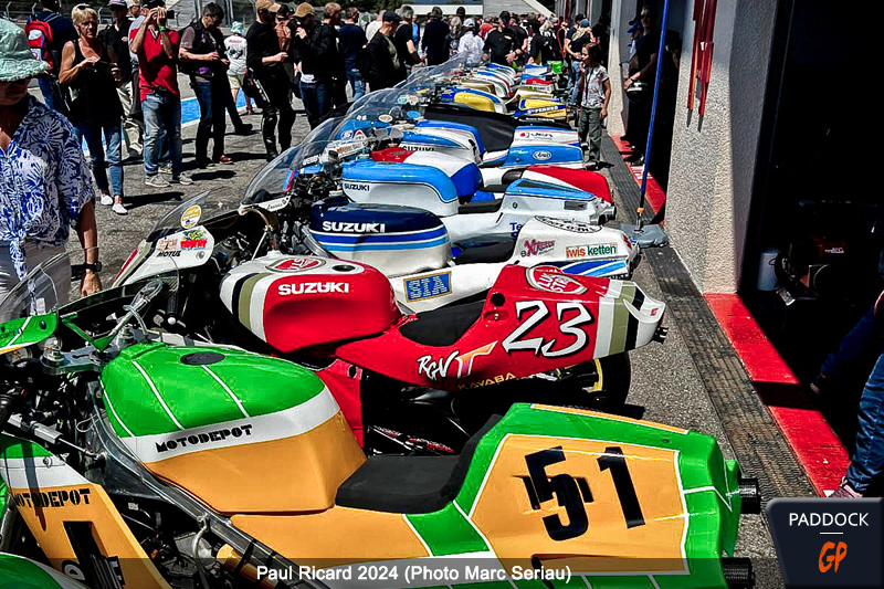 Nous n’allons pas vous parler là du village où vous pouviez essayer la plupart des motos aujourd’hui en vente chez les concessionnaires. Nous n’allons même pas vous parler de la quantité ahurissante de motos de compétition présentes ce week-end sur le circuit Paul Ricard, tellement le simple fait d’en dresser la liste aurait de quoi étourdir le plus féru d’histoire des Grands Prix, y compris notre Jacky Hutteau national, heureux comme un poisson dans l’eau en tant que speaker incollable de l’événement. Et ne parlons pas non plus des activités en piste, quasi ininterrompues de 9 heures à minuit…