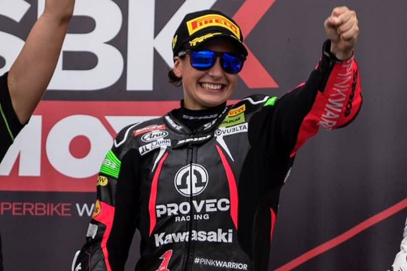 Ce très beau souvenir s’est ouvert sur une nouvelle saison de Supersport 300 dans laquelle elle a remis son titre en jeu. Au terme des neuf courses de la saison, elle n’est pas parvenue à le conserver (celui-ci est revenu à Manuel Gonzalez, ndlr.) mais elle a néanmoins terminé sur la troisième marche du podium. Mais bien que son choix ait été risqué, la pilote Kawasaki l’assume. « J’ai pris cette décision car je pensais qu’il me restait encore des résultats à aller chercher et des choses à apprendre au niveau de mon pilotage. Et puis je suis entrée chez Provec Kawasaki et j’ai pensé que c’était un projet qui allait devenir très important à l’avenir », a-t-elle expliqué.
